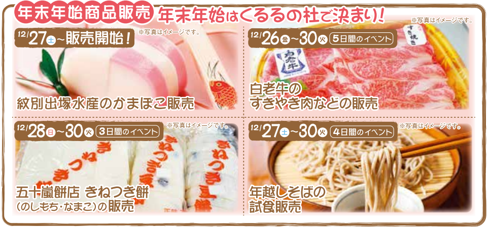 農畜産物直売所では、「白老牛」や道産原料を使用した「生そば」など、年末年始におすすめの商品を各種取り揃えて販売いたします。各商品とも、数に限りがございます。お早めにお買い求めください!